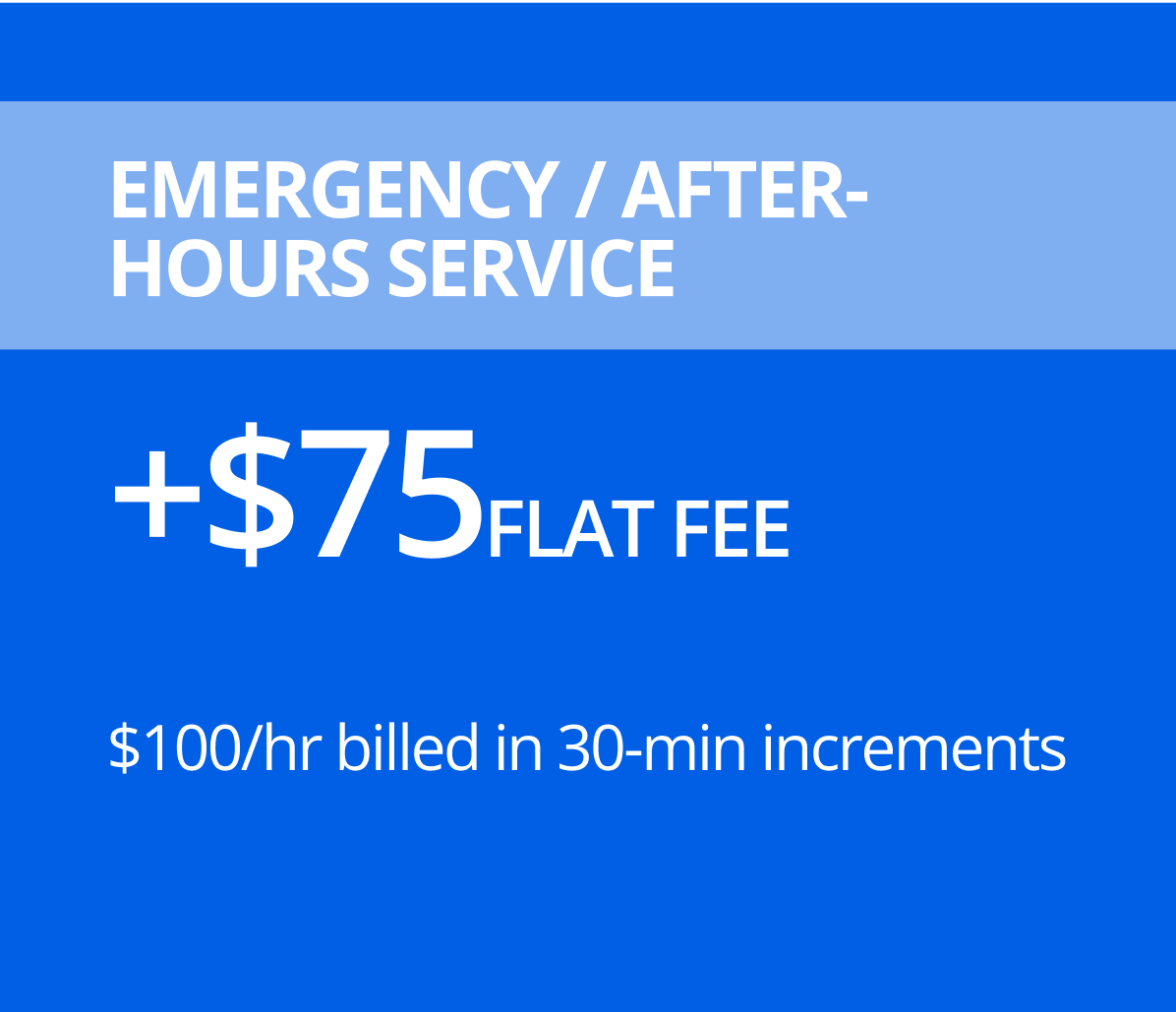 Emergency / After-Hours Service: +$75 flat fee